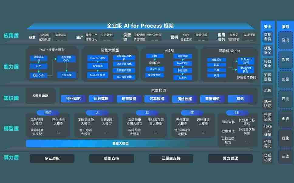 端到端的一站式AI工作空间深度融合了从企业战略规划到日常经营的全流程业务板块,,定向解决车企内部领域多、、、部门多、、、、链条长、、、场景碎片化等难题,,,支持车企快速构建以AI为核心的生产力写作体系,,,实现任务执行与AI能力的无缝集成与交互